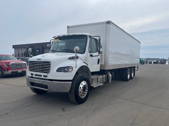 Truck Sales 2022 Freightliner M2106 26’ Box Truck (#TO3341) Back to Inventory Unit # TO3341 Category Box Truck Condition Used Make Freightliner M2106 Year 2021 Price On Request Power Type Diesel Meter Reading 205,207 km Transmission Allison Automatic Engine Manufacturer Cummins L9 Horse Power 350 HP Front Axle 14.7 Rear Axle 40 Suspension Type Airliner Brakes Air Box Size 26' Box Contact Sales Photo Gallery